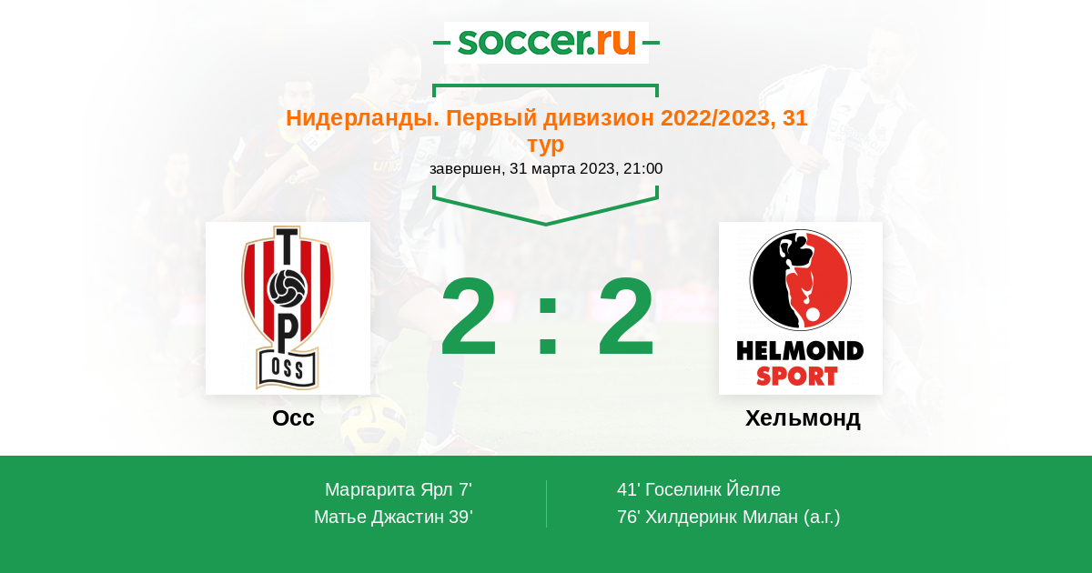 41' (2:1) Госелинк Йелле (19) (Каарс Мартейн (9))