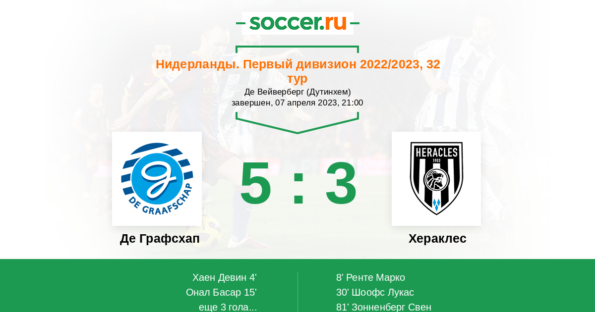 30' (2:2) Шоофс Лукас (15) (Ренте Марко (5))