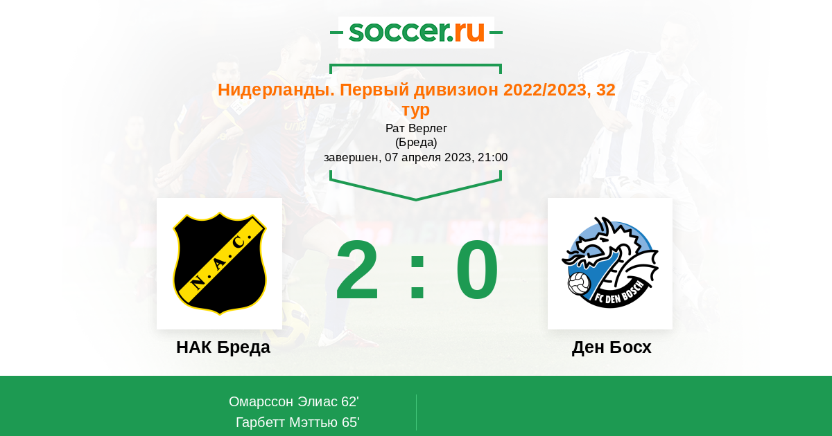 65' (2:0) Гарбетт Мэттью (26) (Ван дер Санде Йорт (9))