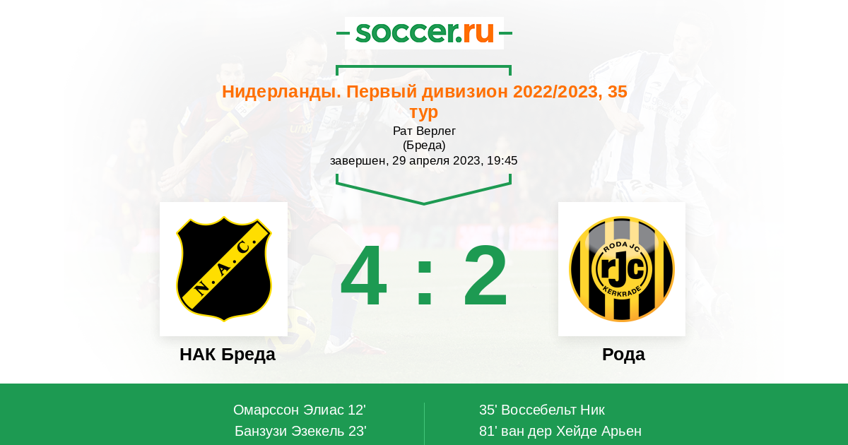 23' (2:0) Банзузи Эзекель (8) (Ван дер Санде Йорт (9))