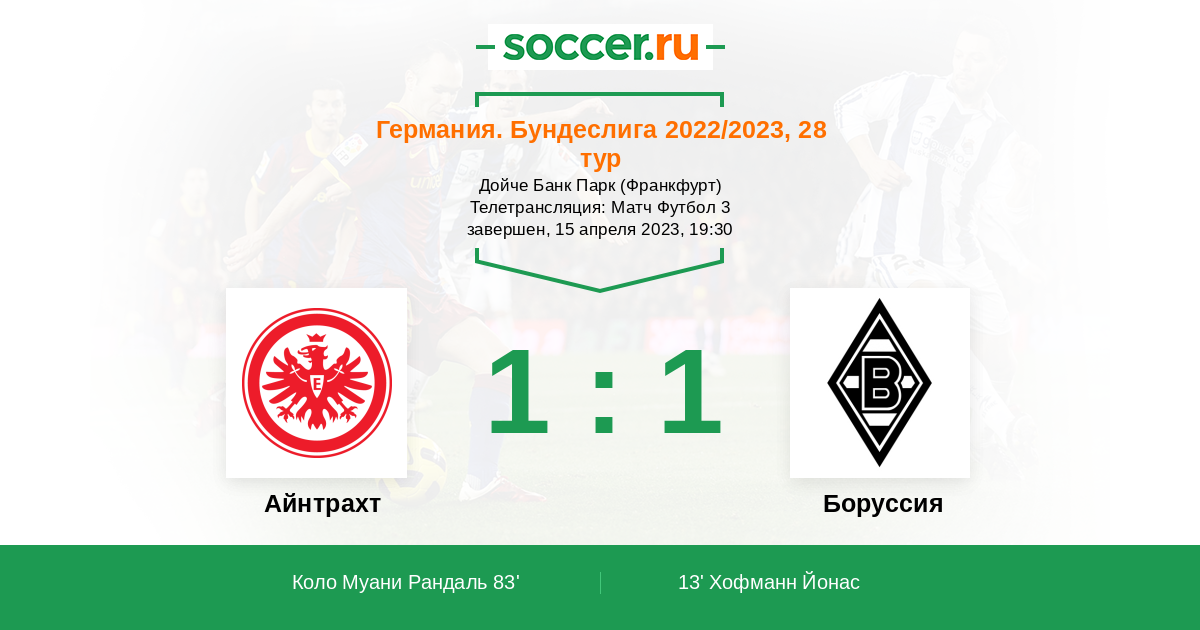 13' (0:1) Хофманн Йонас (23) (Тюрам Маркус (10))