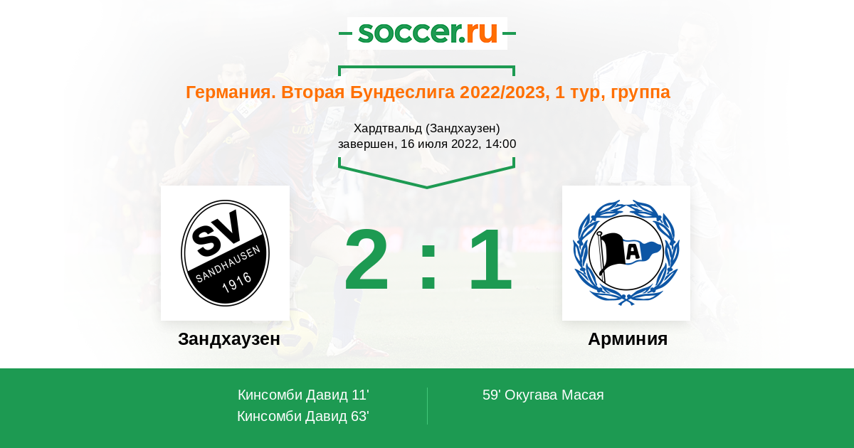 В первом туре второй немецкой Бундеслиги Зандхаузен принимает вылетевшую из первой Бундеслиги Арминию. Сложно сказать, кто является фаворитом, но зная статистику хозяев в прошлом сезоне предположу, что сегодня забьют обе команды.
