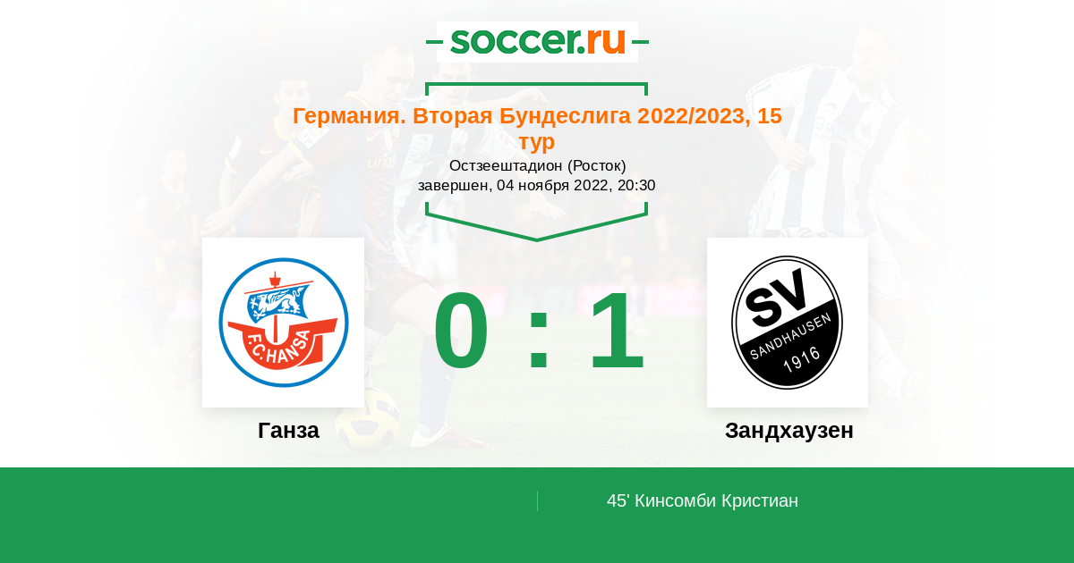 45' (0:1) Кинсомби Кристиан (8) (Кинсомби Давид (10))