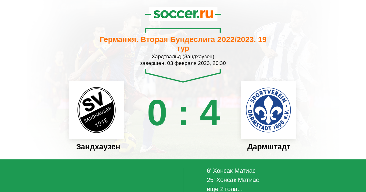 6' (0:1) Хонсак Матиас (18) (Шнельхардт Фабиан (8))