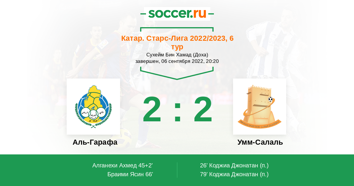 66' (2:1) Браими Ясин (8) (Аль-Ахрак Нассер (4))