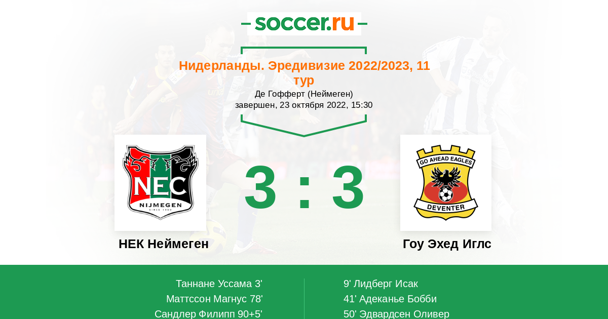 50' (1:3) Эдвардсен Оливер (23) (Адеканье Бобби (11))
