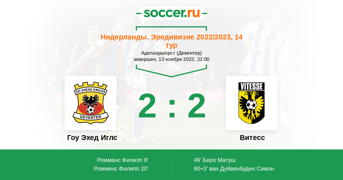 Запасные: 11 Фредериксен Николай (с 67'), 18 Хажек Томаш (с 67'), 53 ван Дуйвенбуден Симон (с 67'), 26 Йонатанс Милиано (с 86'), 25 де Регт Гиан, 16 Схерпен Кьелл, 5 Ферро, 35 Дейкс Митчелл, 29 Буйтинк Томас, 22 Домджони Тони, 9 Санко Мохамед, 24 Хувен Йерун