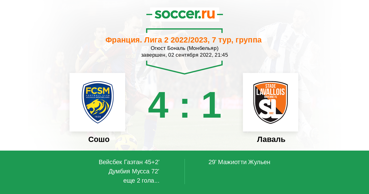 72' (2:1) Думбия Мусса (70) (Фоссурье Жюльен (28))