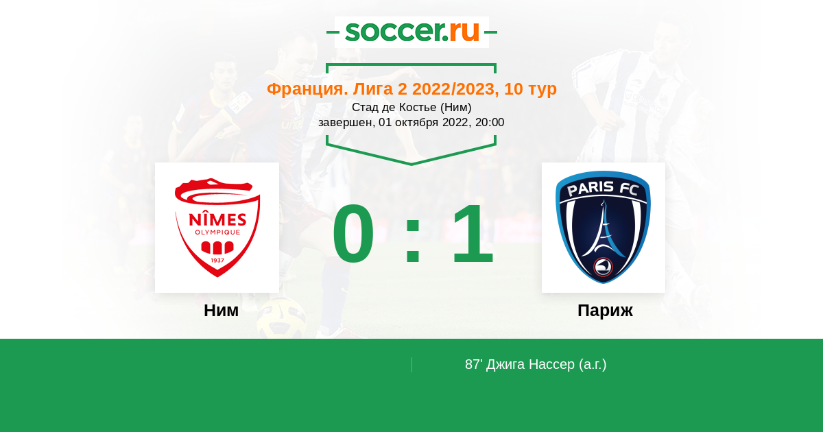 87' (0:1) Автогол Джига Нассер (19)