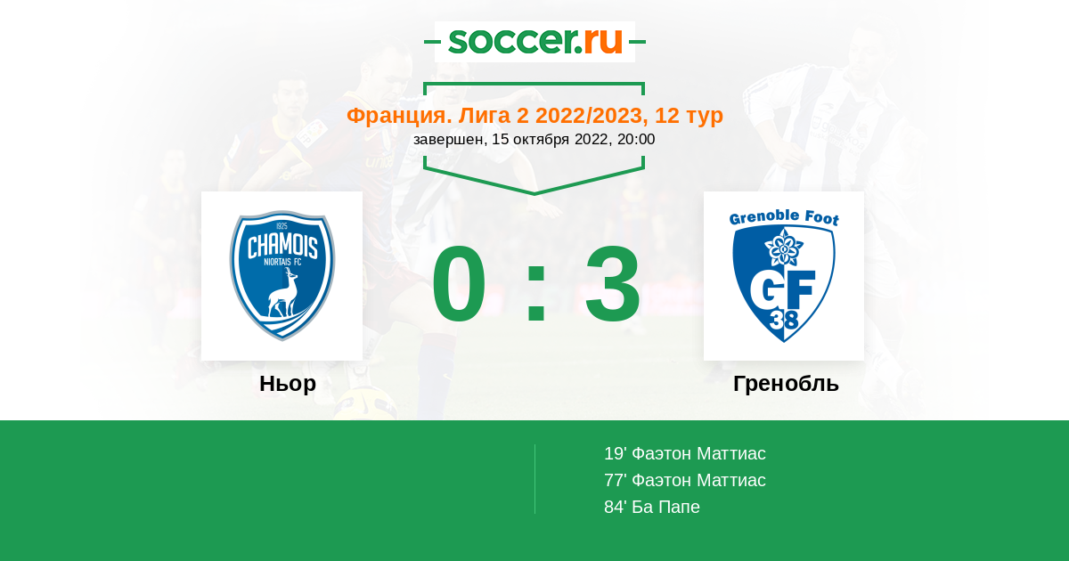 19' (0:1) Фаэтон Маттиас (19) (Ба Папе (28))