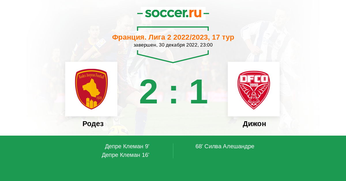16' (2:0) Депре Клеман (25) (Буасье Реми (6))