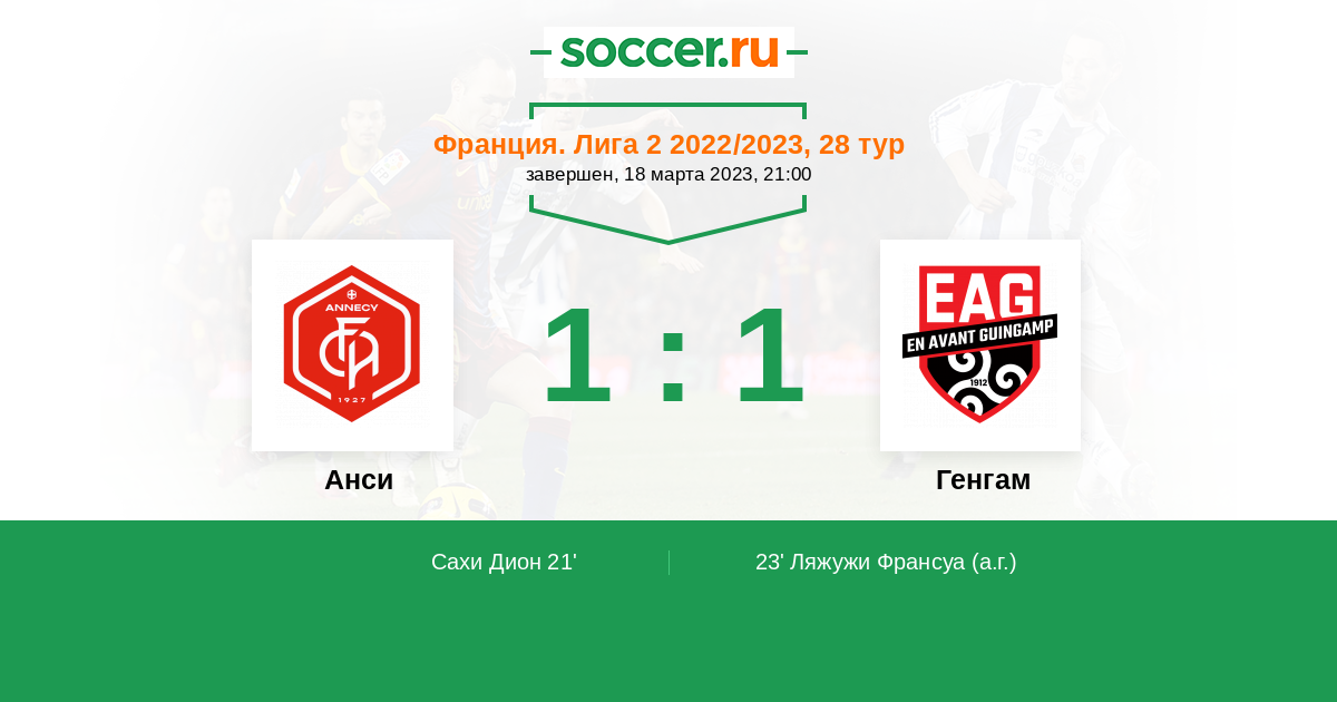 23' (1:1) Автогол Ляжужи Франсуа (6)