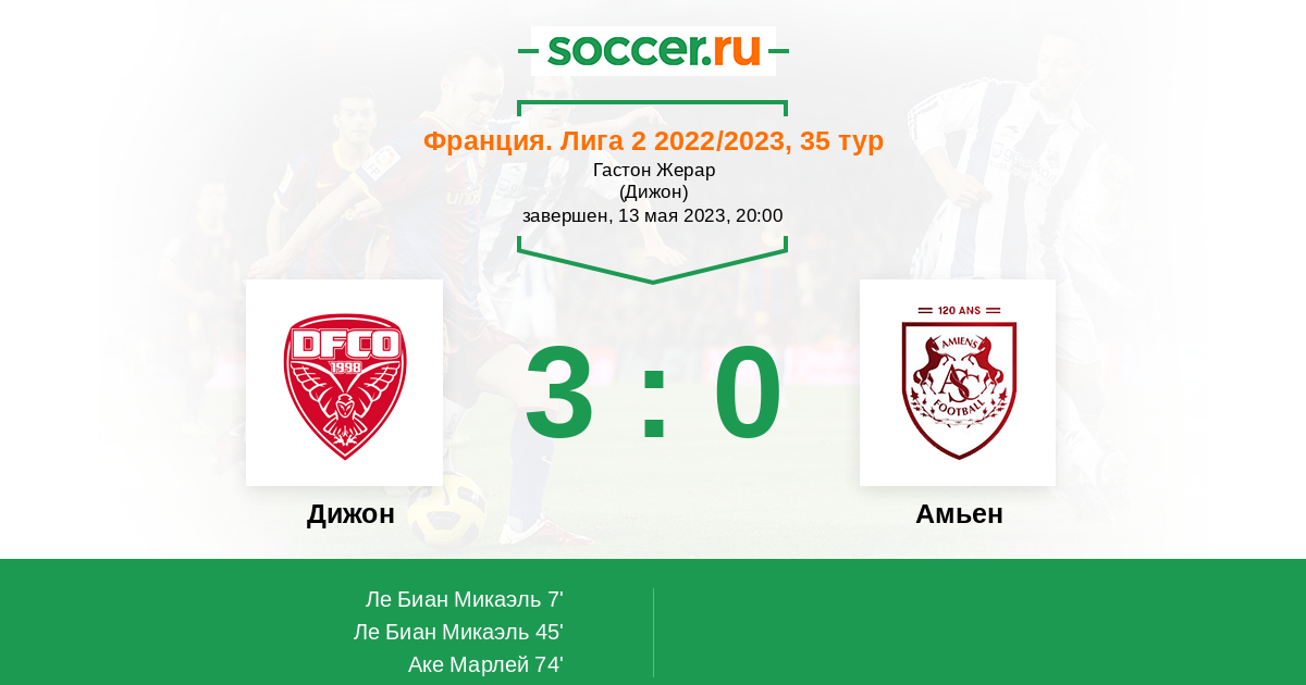 7' (1:0) Ле Биан Микаэль (8) (Сумаре Бриан (28))