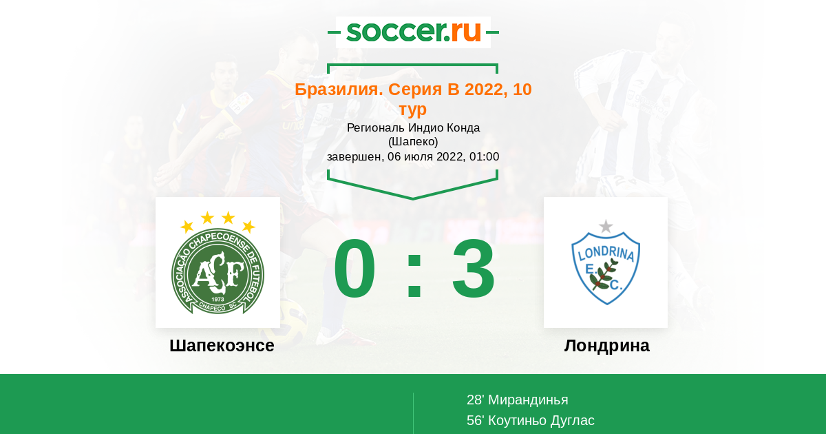 28' (0:1) Мирандинья (7) (Коутиньо Дуглас (17))