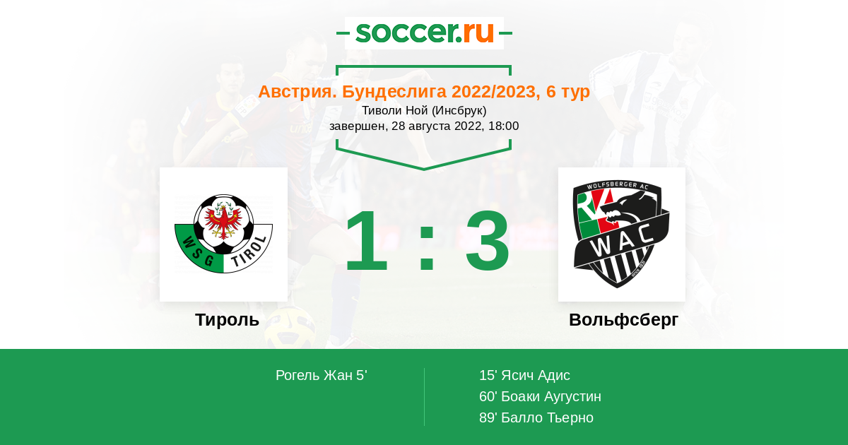 60' (1:2) Боаки Аугустин (20) (Ясич Адис (97))
