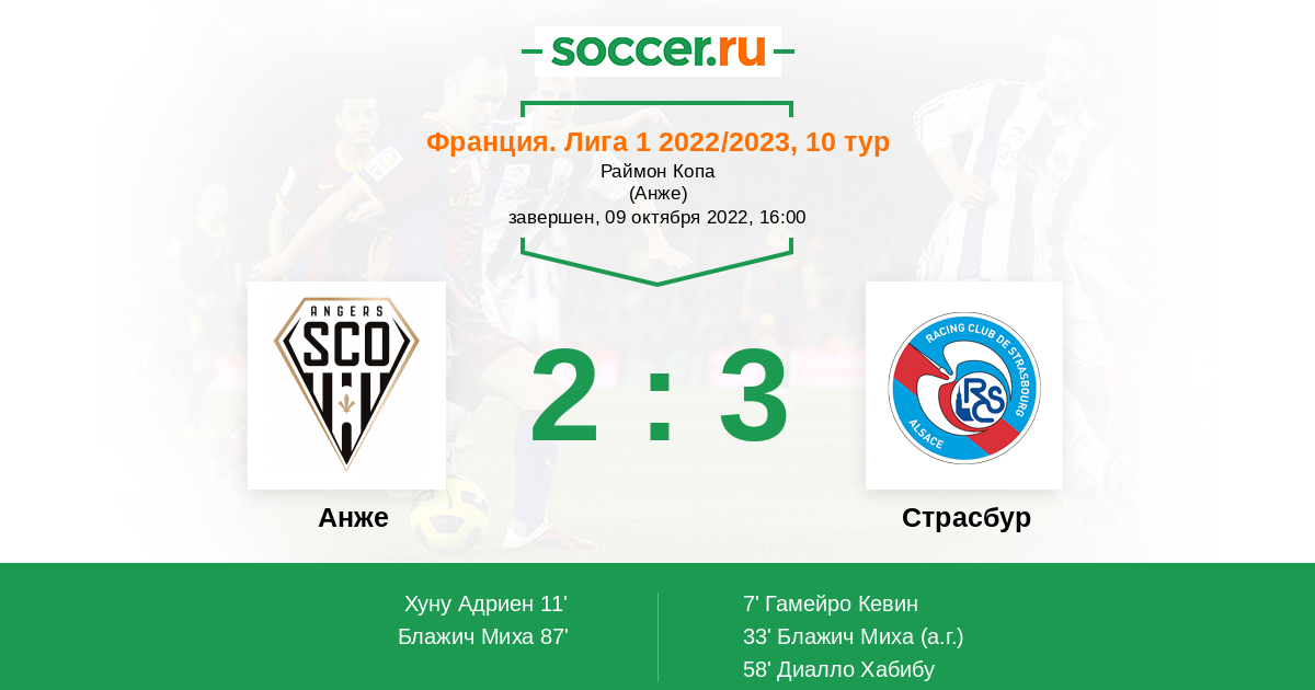 11' (1:1) Хуну Адриен (23) (Буфаль Софьян (7))