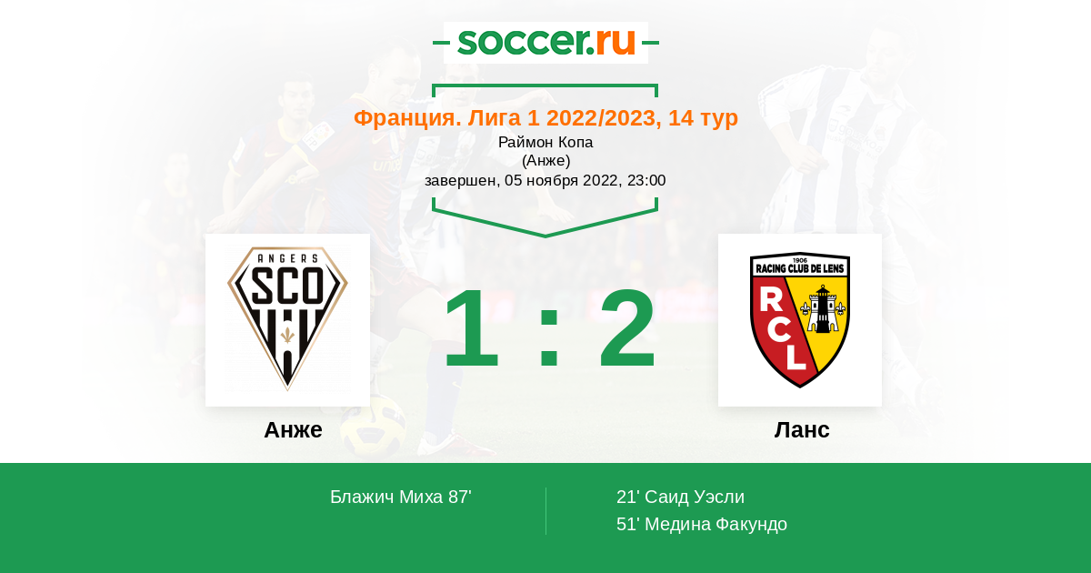 21' (0:1) Саид Уэсли (22) (Сотока Флориан (7))