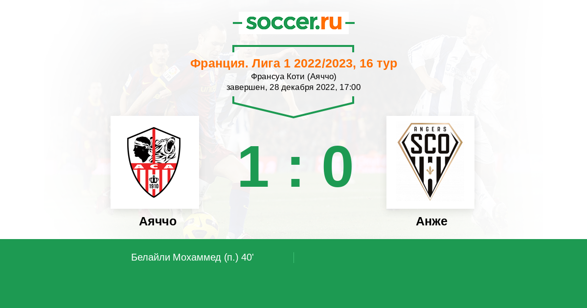 40' (1:0) Белайли Мохаммед (92)
