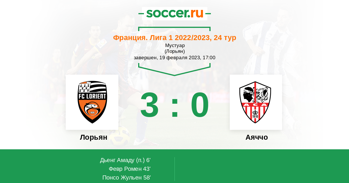 43' (2:0) Февр Ромен (14) (Ле Фи Энцо (80))
