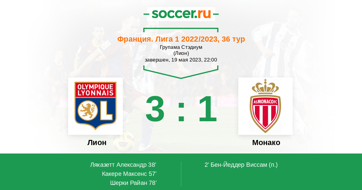 78' (3:1) Шерки Райан (18) (Ляказетт Александр (10))