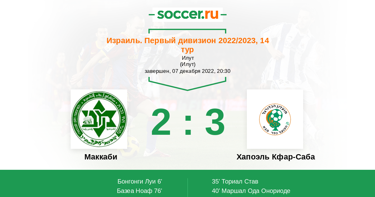Запасные: Хазут Охад (с 63'), Хаюн Бен (с 63'), Катаби Галь (с 80'), Шор Итай (с 80'), Бекер Рой (с 90'), Галанти Матан, Перетц Омер, Демол Алон, Лави Яхели