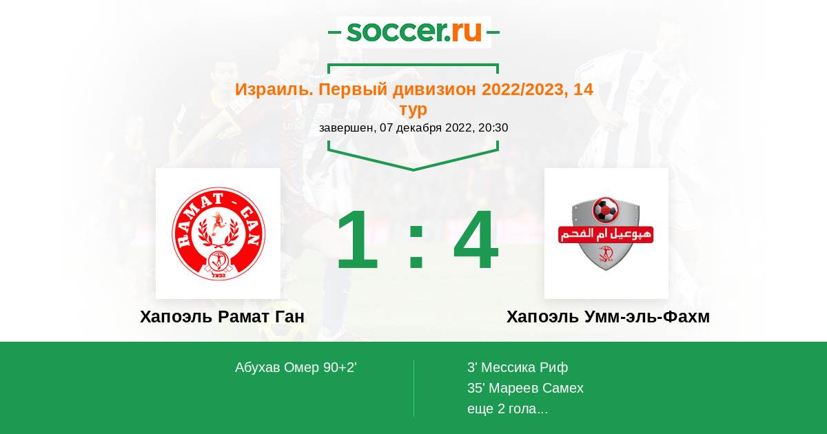 90+2' (1:4) Абухав Омер