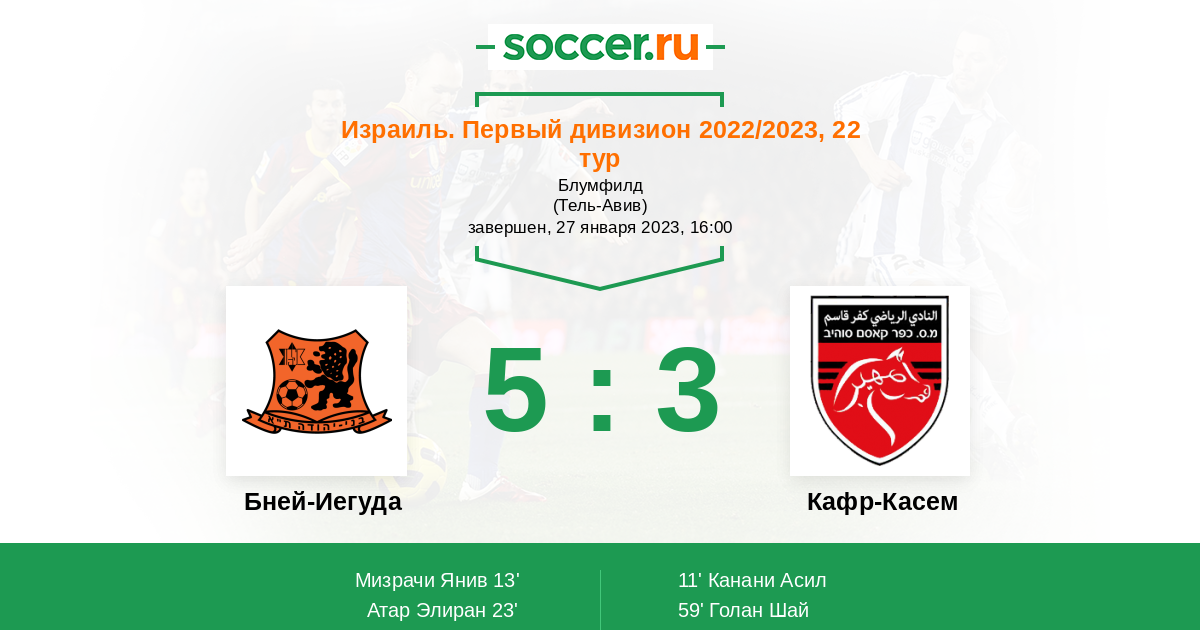 Запасные: Бадер Эбрахем (с 38'), Хаваз Бен (с 46'), Гершкович Эден (с 46'), Бен Шимон Амир (с 62'), Элдада Амер (с 62'), Риген Лиран, Мазор Шей, Хатука Тзлил, Нассар Язан