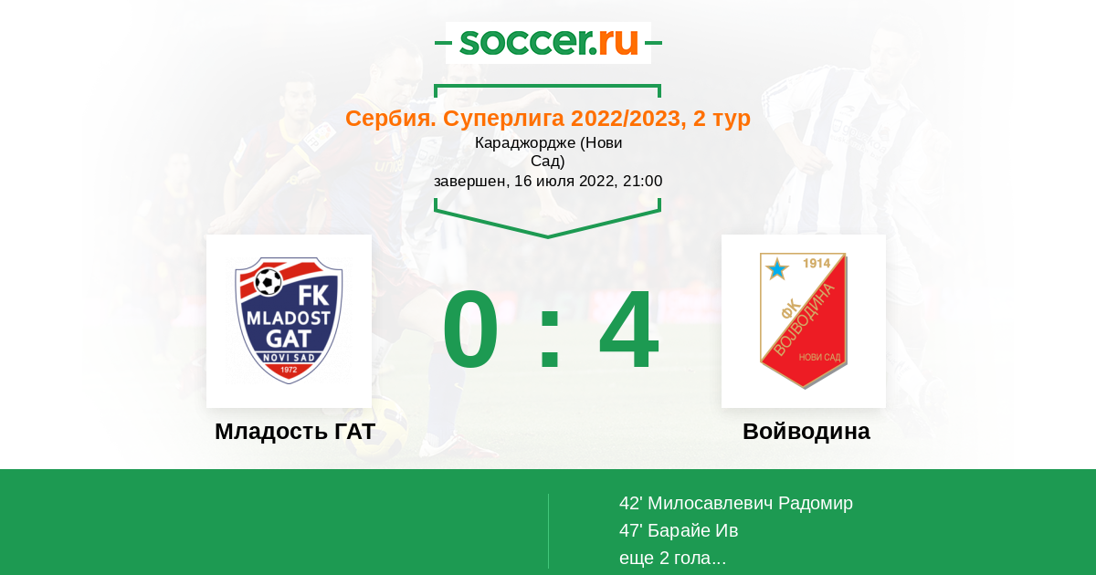 42' (0:1) Милосавлевич Радомир (7)