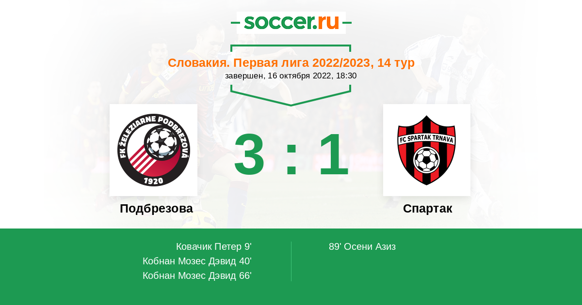 40' (2:0) Кобнан Мозес Дэвид (99) (Датко Самуэл (11))