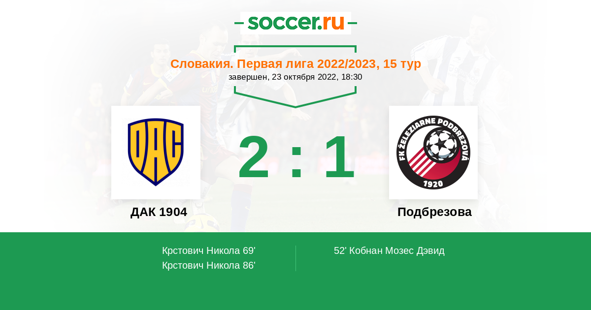 52' (0:1) Кобнан Мозес Дэвид (99) (Ковачик Петер (20))