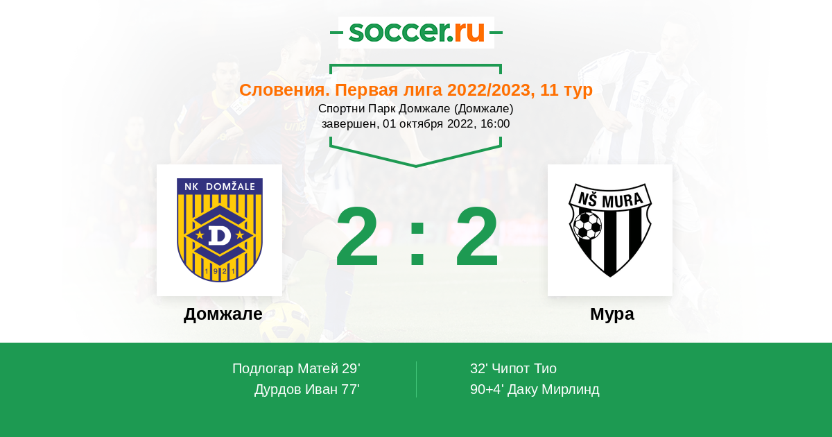 32' (1:1) Чипот Тио (24) (Шролер Мартин (30))