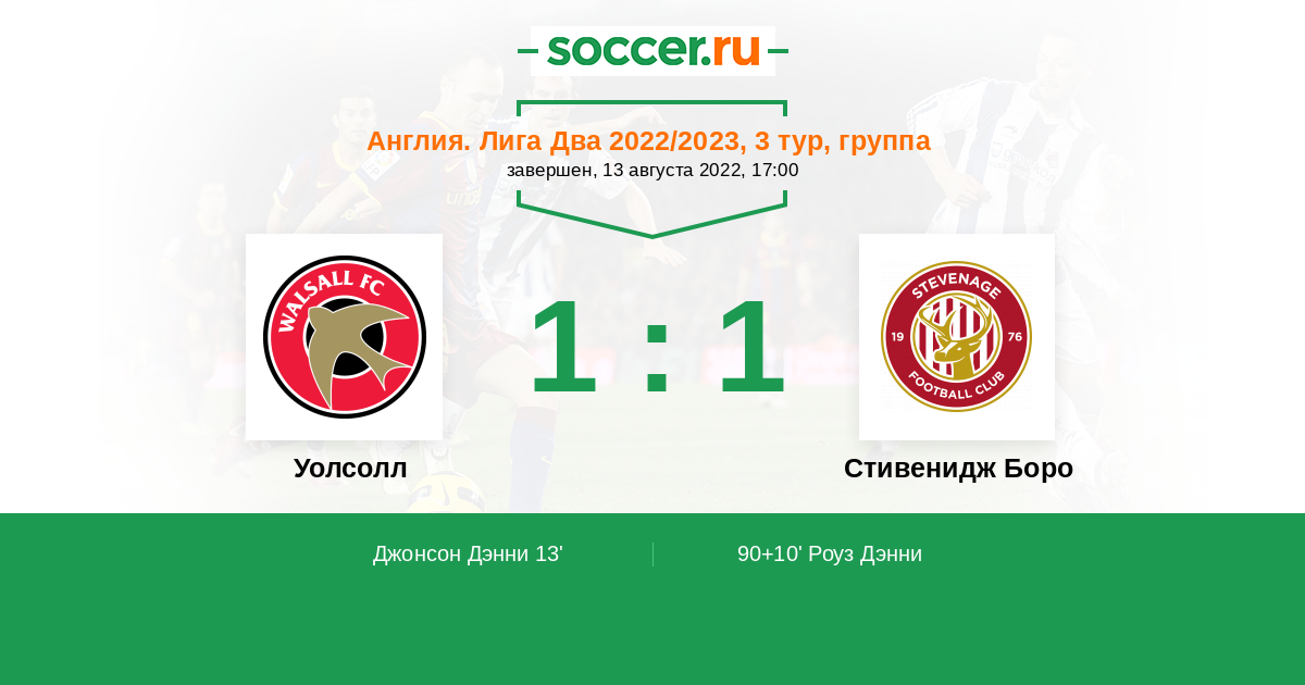 13' (1:0) Джонсон Дэнни (39) (Уильямс Эндрю (11))