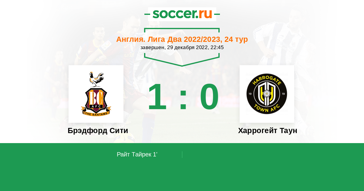 1' (1:0) Райт Тайрек (32) (Халлидэй Брэд (2))