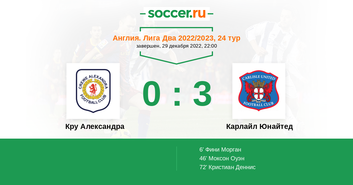 6' (0:1) Фини Морган (5) (Моксон Оуэн (4))