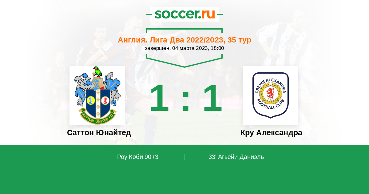 Саттон Юнайтед - Кру Александра