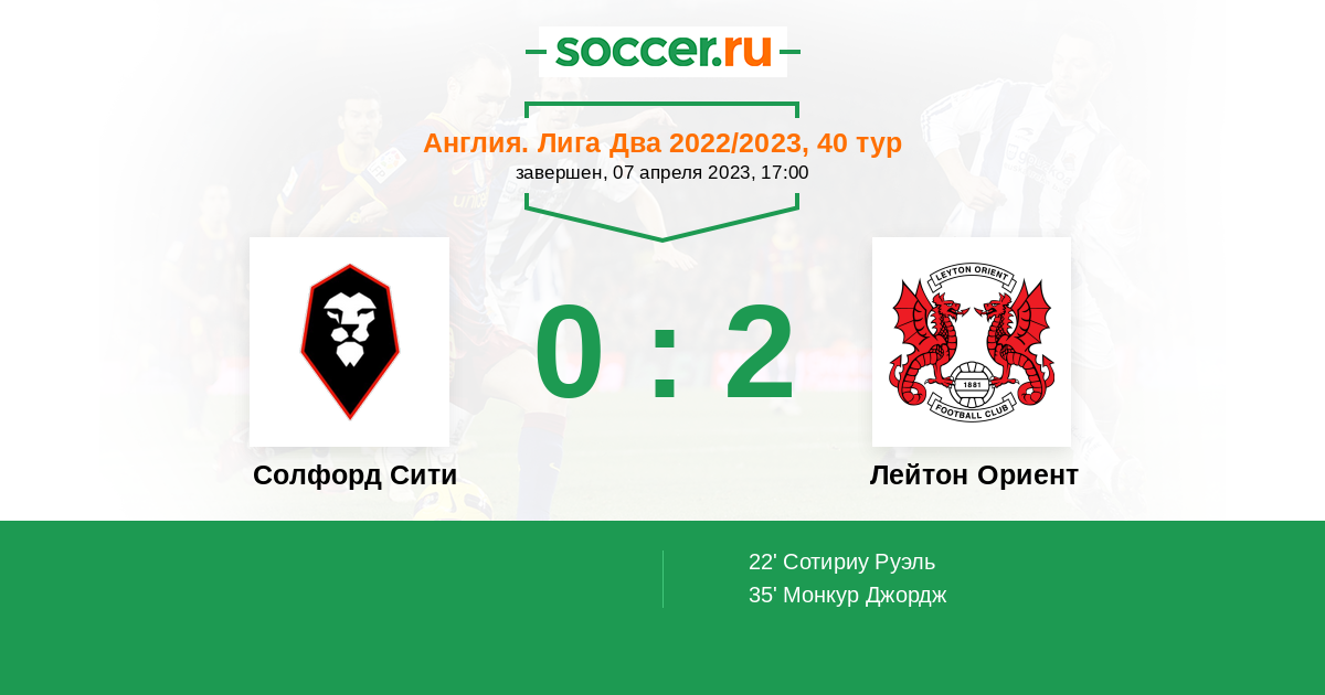 22' (0:1) Сотириу Руэль (10) (Садльер Киран (34))