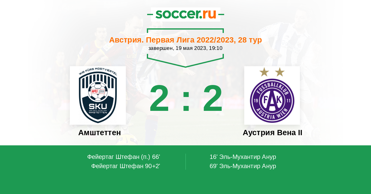 66' (1:1) Фейертаг Штефан (18)