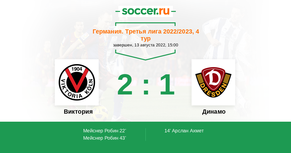 14' (0:1) Арслан Ахмет (6) (Шеффлер Мануэль (33))