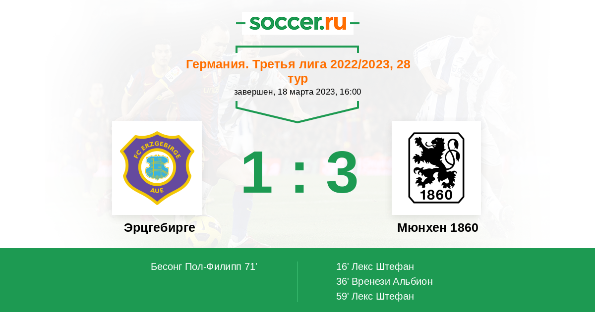 16' (0:1) Лекс Штефан (7) (Верль Мариус (38))