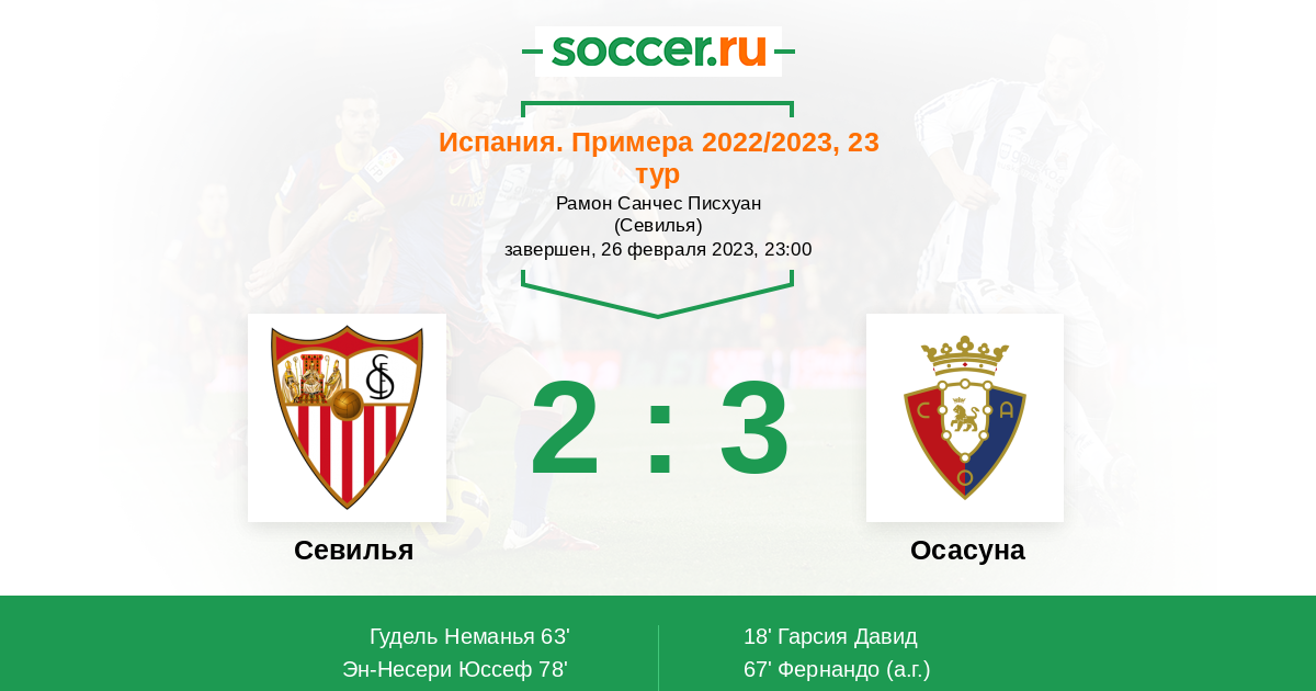 Запасные: 1 Дмитрович Марко, 31 Флорес Альберто, 3 Теллес Алекс (с 84'), 19 Акунья Маркос (с 46'), 2 Монтиэль Гонсало (с 84'), 7 Сусо (с 46'), 5 Окампос Лукас (с 57'), 12 Мир Рафаэль
