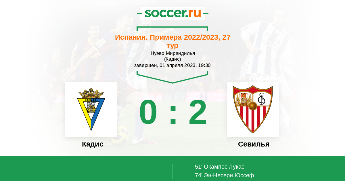 51' (0:1) Окампос Лукас (5)