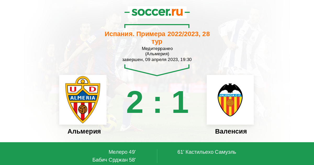 49' (1:0) Мелеро (3) (Кошта Самуэль (23))