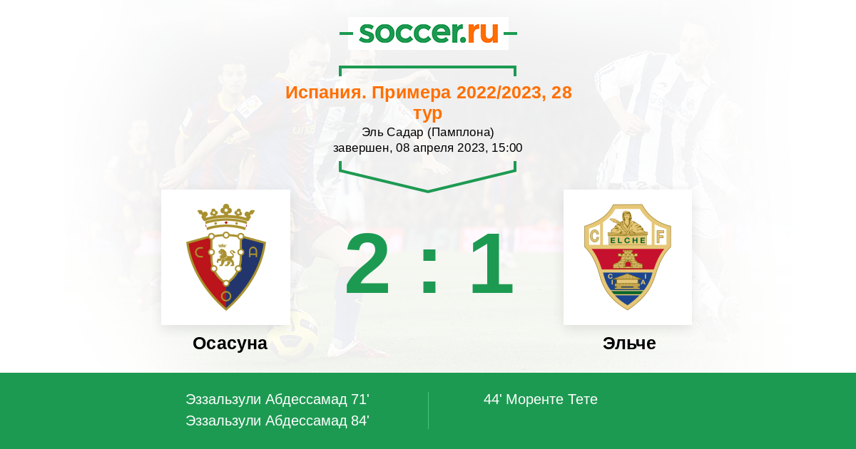 71' (1:1) Эззальзули Абдессамад (12) (Кике Барха (11))