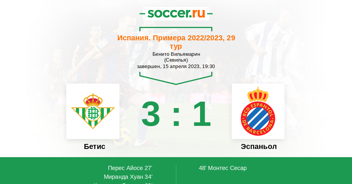 34' (2:0) Миранда Хуан (33) (Перес Айосе (21))