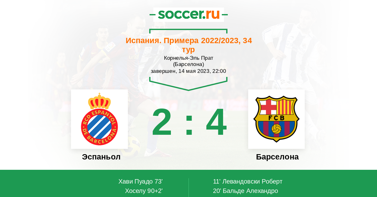 Запасные: 7 Дембеле Усман (с 62'), 18 Альба Жорди (с 63'), 10 Фати Ансу (с 74'), 17 Алонсо Маркос (с 74'), 19 Кессье Франк (с 89'), 20 Роберто Серхи, 36 Тенас Арнау, 24 Гарсия Эрик, 32 Торре Пабло, 13 Пенья Игнасио, 11 Торрес Ферран
