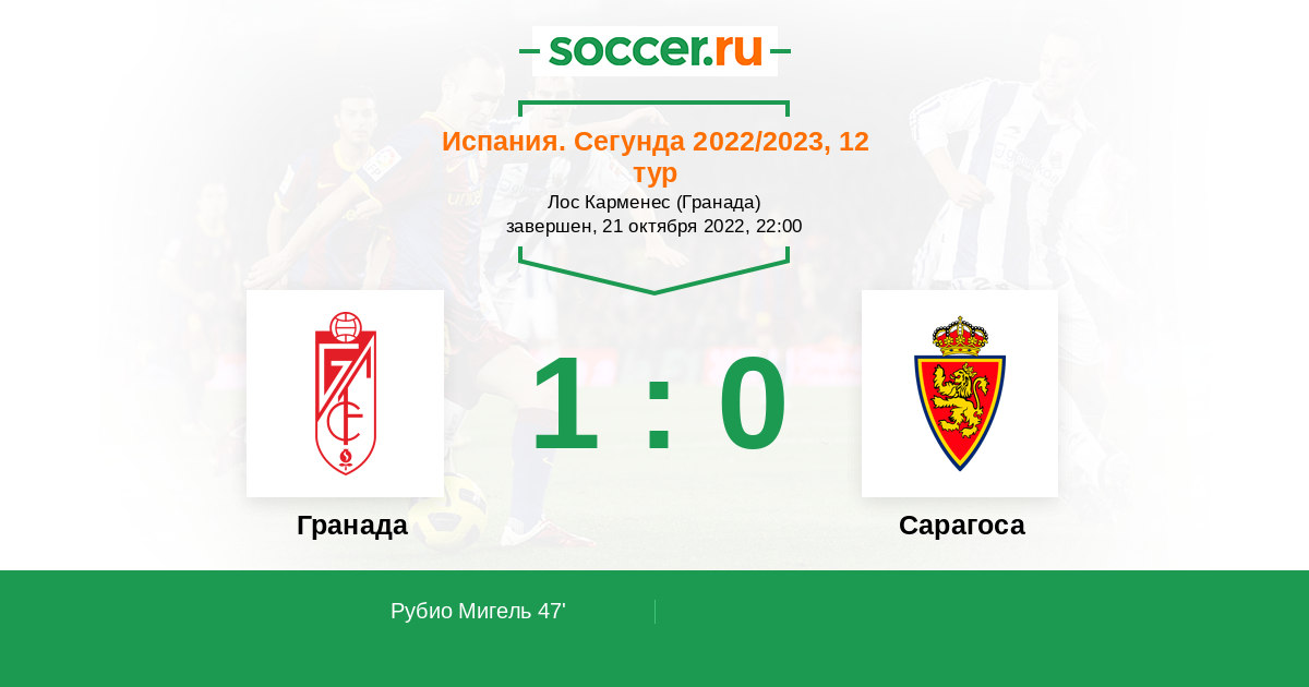 47' (1:0) Рубио Мигель (4) (Кини (17))