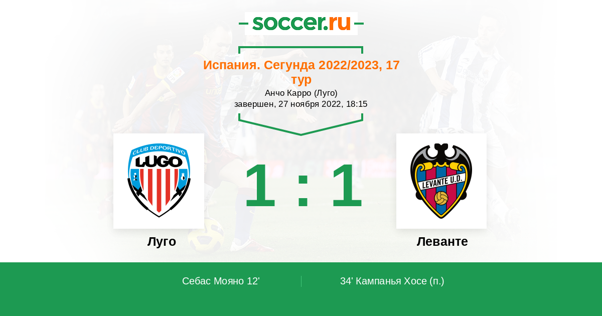 34' (1:1) Кампанья Хосе (24)