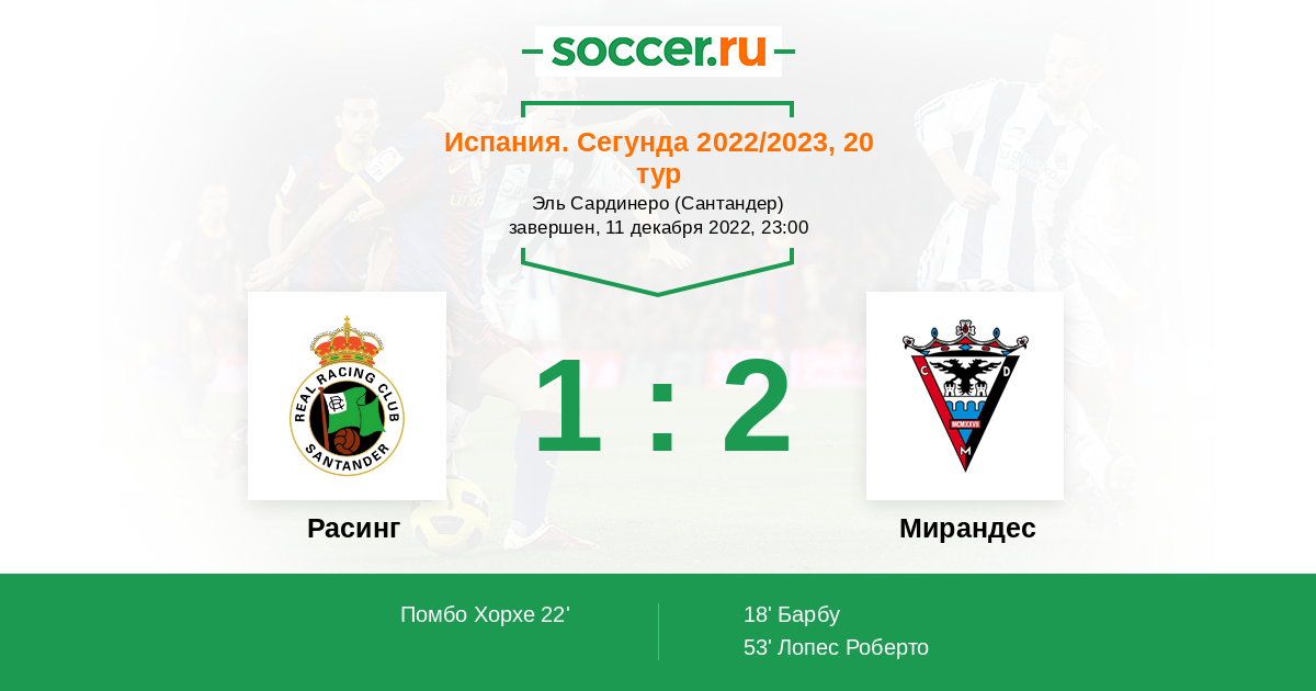 22' (1:1) Помбо Хорхе (24) (Сайнс Маса Иниго (6))