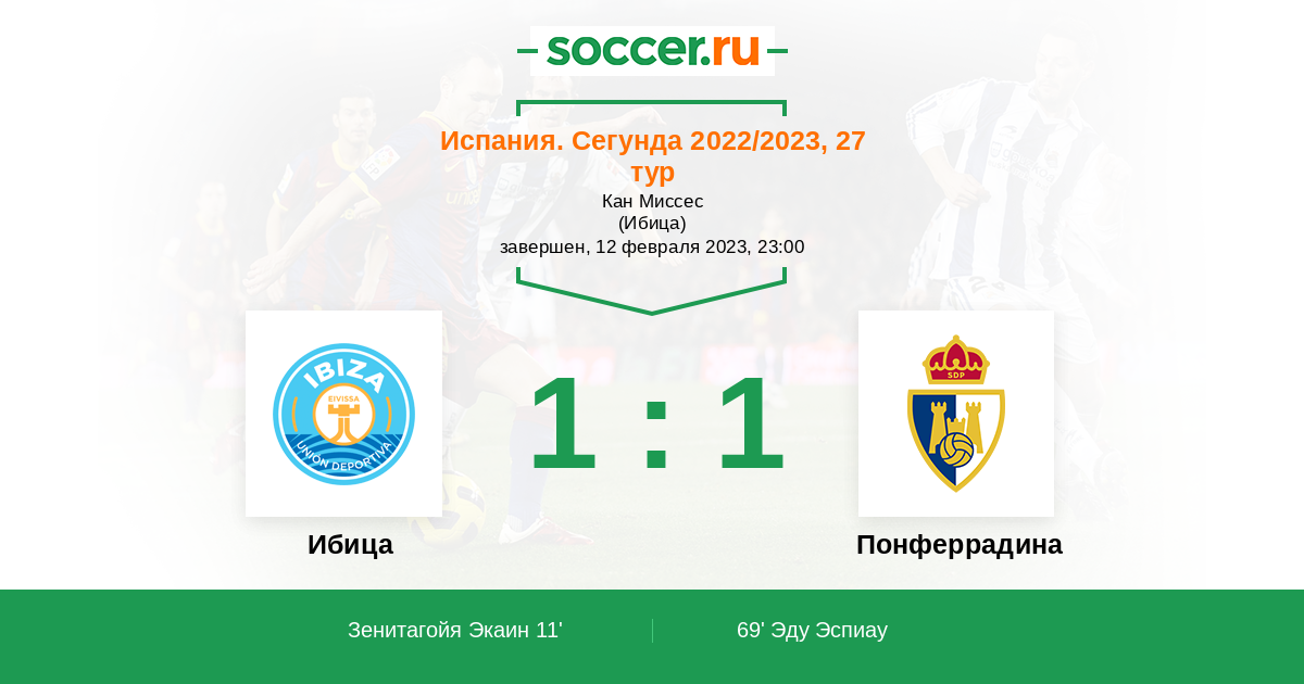 11' (1:0) Зенитагойя Экаин (10) (Давид Хосе (30))