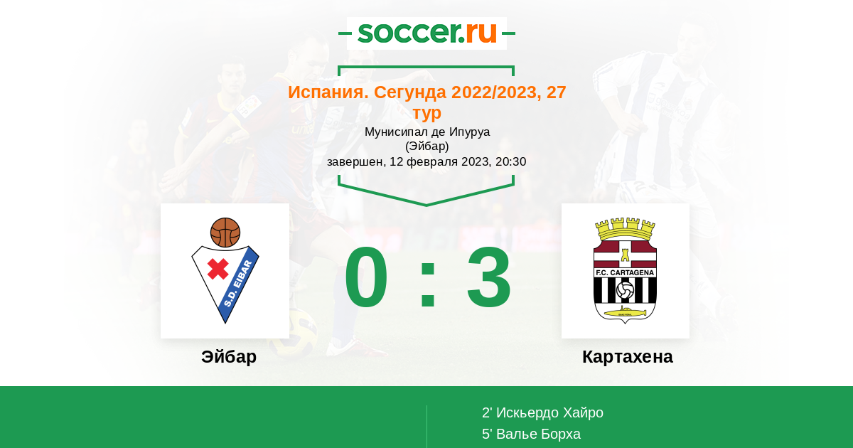 5' (0:2) Валье Борха (10) (Уренья Оскар (38))